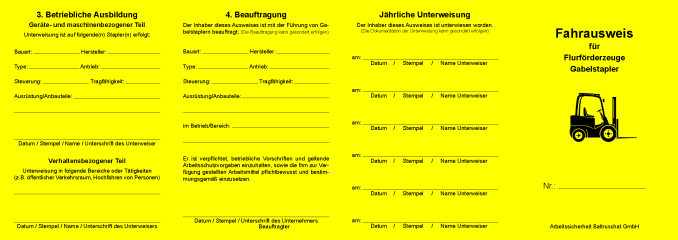 Auf Wunsch können die erstellen Staplerscheine individuell und selbstverständlich ohne Mehr-kosten mit Ihrem Firmenlogo erstellt, bzw. ver-sehen werden.