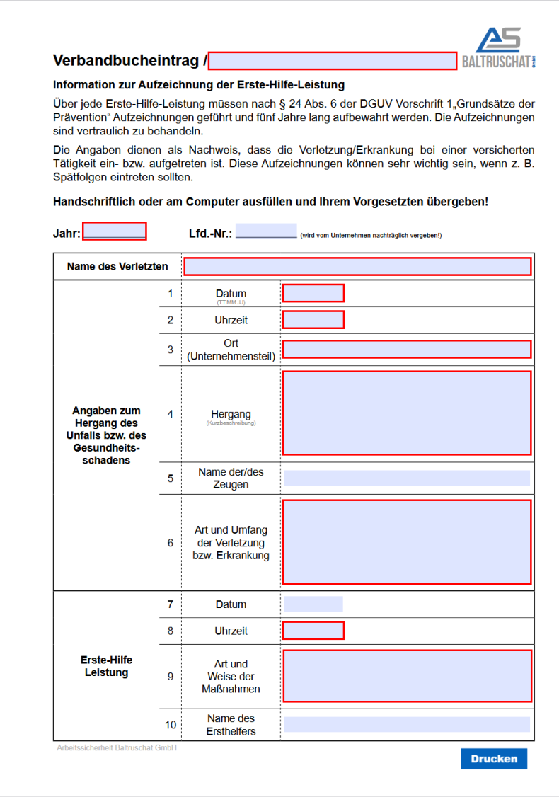 Verbandbuch, Verbandbuchbogen, Verbandbucheintrag