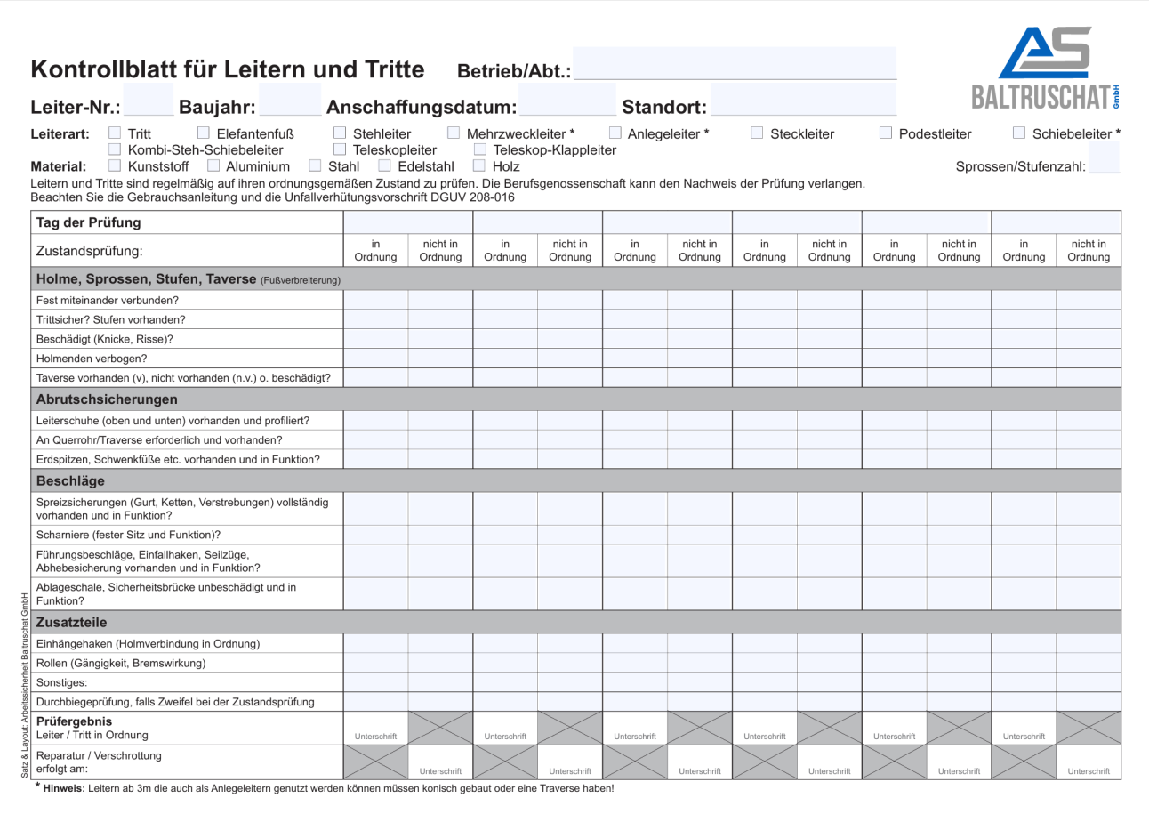 Kontrollblatt Leitern & Tritte